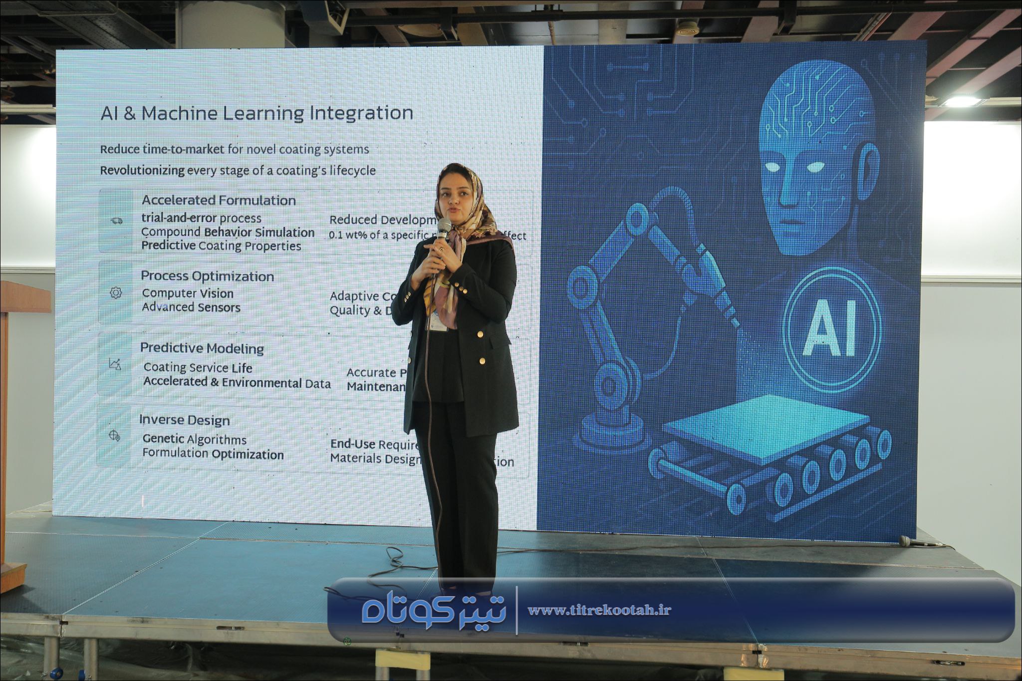 وکیلی با اشاره به فناوری های جدید بیان کرد: هوش مصنوعی انقلابی در دنیا به پا کرده و در صنعت پوشش از مراحل ابتدایی تولید پوشش، فرمولاسیون تا مراحل پایانی و نصب کاربرد دارد و به تجزیه و تحلیل می پردازد. هوش مصنوعی در صنعت پوشش های آلی قابلیت پیش بینی پذیری، مهندسی معکوس، تولید در شرایط بهینه و مقرون به صرفه دارد. شبیه سازی های هوش مصنوعی می تواند نقش موثری در فرایندهای تولید و اجرای این پوشش ها داشته باشد و برای جبران خسارتهای محیط زیستی نیز اثر گذار است. به طور کلی پیش بینی می شود آینده صنعت پوشش ها به وسیله هوش مصنوعی متحول و کارا تر می شود و به کمک آن فرآیندها می تواند به نفع صنعت بهینه شود.
