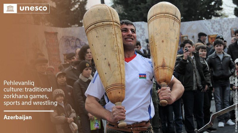 «فرهنگ پهلوانی، بازی های سنتی زورخانه ای، ورزش و کشتی»، به تازگی در فهرست میراث ناملموس به ثبت رسیده است. تبریک به آذربایجان.».