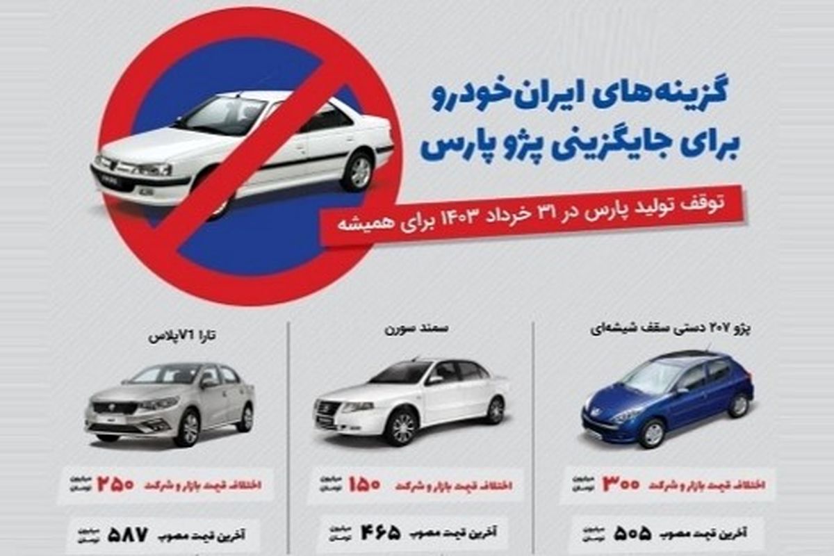 بر این اساس از تارا دستی ، ۲۰۷ دستی و همچنین سورن به عنوان محصولات جایگزین پژو پارس نام برده می شود.