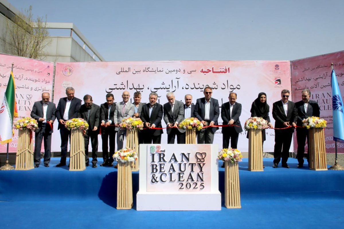 مراسم افتتاحیه سی و دومین نمایشگاه بین المللی مواد شوینده،آرایشی، بهداشتی، سلولزی و ماشین آلات وابسته (ایران بیوتی و کلین ۱۴۰۴( امروز ۲۱ فروردین ماه با حضور شیخ، معاون صنایع عمومی وزیر صمت، مهدی پیرصالحی رییس سازمان غذا و دارو، رئیس و اعضای هیئت مدیره شرکت سهامی نمایشگاه های بین المللی تهران، برخی از مدیران وزارت بهداشت، اعضای انجمن های تخصصی، فعالان و متخصصان این حوزه و... در محل دائمی نمایشگاه های بین المللی تهران برگزار شد.