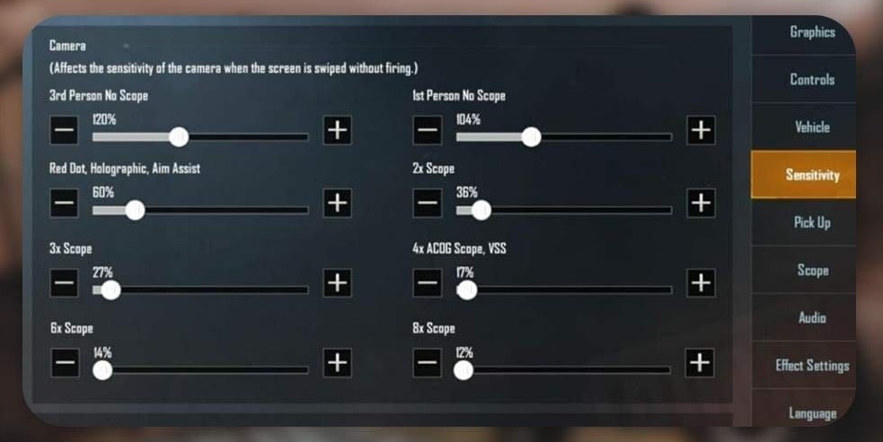 برای مثال، حساسیت دوربین تعیین میکند که هنگام چرخش صفحه با چه سرعتی هدف جابجا شود. اگر حساسیت بیش از حد بالا باشد کنترل سخت میشود و اگر زیاد پایین باشد واکنش شما کند خواهد شد. به همین دلیل، تنظیمات باید با دقت اجرا شوند.