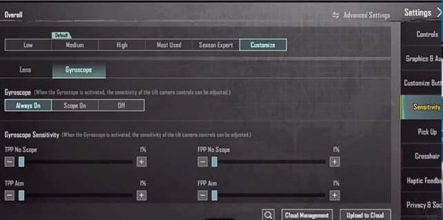 برای شروع میتوانید از مقادیر استانداردی استفاده کنید که بازیکنان حرفهای توصیه میکنند و سپس آن را مطابق سبک شخصی اصلاح کنید. این مقادیر به خصوص برای مدهای رقابتی مانند TDM یا اسکواد بسیار کارآمد هستند.