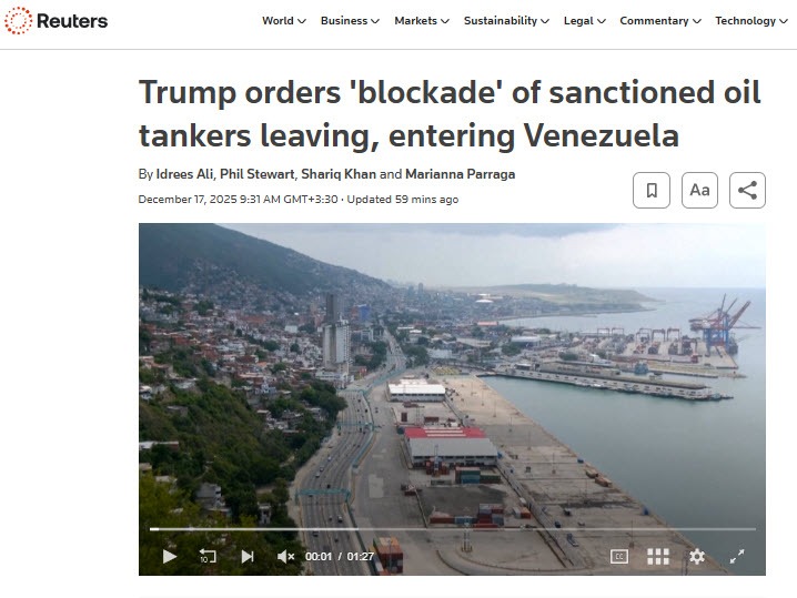 دونالد ترامپ، رئیس جمهور آمریکا، دستور «محاصره کامل» تمام نفتکش های تحریم شده ای را که وارد یا خارج از ونزوئلا می شوند صادر کرد؛ اقدامی که با هدف افزایش فشار بر دولت نیکلاس مادورو و قطع منبع اصلی درآمد این کشور انجام شده است. هنوز مشخص نیست این محاصره چگونه اجرا خواهد شد، اما آمریکا حضور نظامی خود را در منطقه به طور چشمگیری افزایش داده است. این تصمیم باعث افزایش بیش از ۱ درصدی قیمت جهانی نفت شد، زیرا بازار نگران کاهش صادرات ونزوئلا است. کارشناسان حقوق بین الملل می گویند محاصره می تواند از نظر حقوق داخلی و بین المللی به عنوان «اقدام جنگی» تلقی شود و برخی نمایندگان کنگره نیز آن را اعلان جنگ بدون مجوز دانسته اند. از زمان توقیف یک نفتکش تحریمی در هفته گذشته، صادرات نفت ونزوئلا به شدت کاهش یافته و شرایط اقتصادی این کشور وخیم تر شده است. تحلیلگران هشدار می دهند ادامه این وضعیت می تواند قیمت نفت را ۵ تا ۸ دلار در هر بشکه افزایش داده و مهاجرت گسترده از ونزوئلا را تشدید کند.