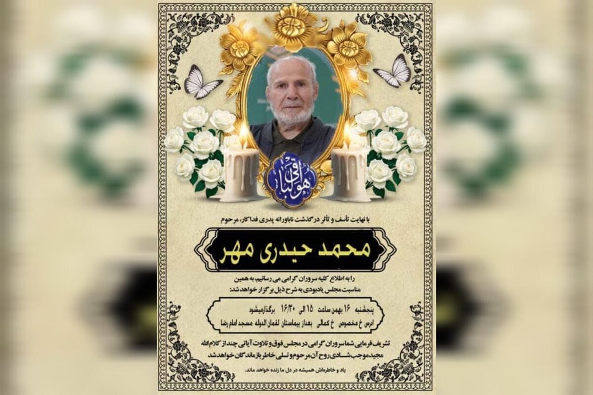 مرحوم حیدری مهر با بیش از نیم قرن تجربه در عرصه عکاسی نمایشگاهی، از چهره های شناخته شده و مورد احترام این صنعت به شمار می رفت. فعالان صنعت نمایشگاهی از او به عنوان فردی خوش قلب، با تفکری خاص و نگاهی متفاوت به ثبت رویدادها یاد می کنند.