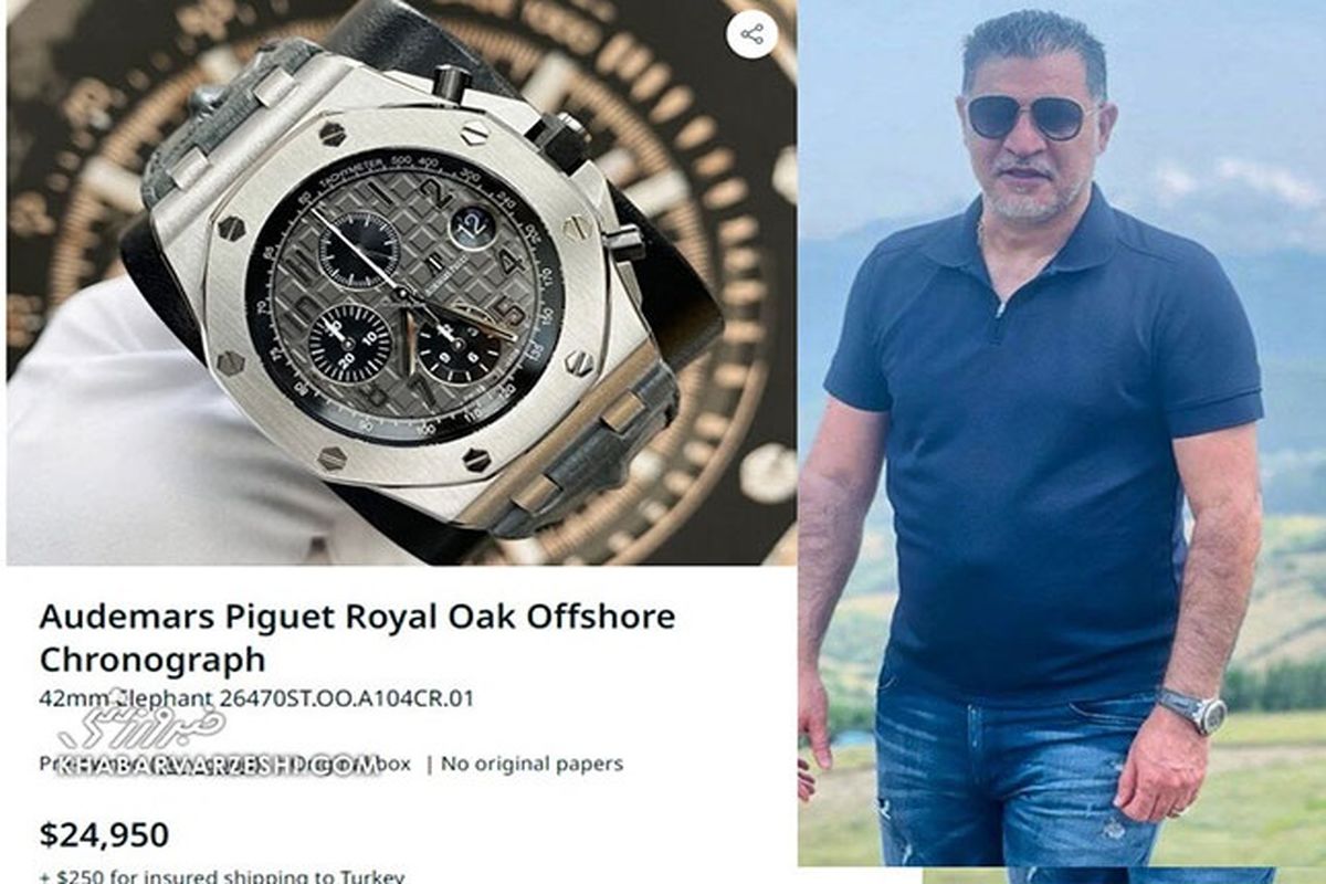 شهریار فوتبال ایران علاوه بر اینکه خودش وارد صنعت مد و فشن شده، همواره از محصولات تراز اول در پوشاک استفاده کرده است. او همیشه به تیپ و ظاهرش اهمیت داده و یکی از خوشتیپترین افراد فوتبال ما محسوب میشود. دایی در تصویر زیر ساعت Royal Oak Offshore از برند Audemars Piguet که در سال ۲۰۱۴ تولید شده در دست دارد که بند چرم آن از تمساح است و قابلیت ۵۰ ساعت ذخیره انرژی دارد. نرخ مارکت این ساعت در سایتهای معتبر جهانی ۲۵ هزار دلار است.