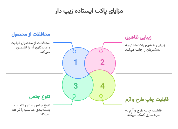 پاکت های ایستاده بدلیل ویژگیهای منحصربهفرد، جایگاه ویژهای یافتهاند. این پاکتها با قابلیت ایستادن، از محتویات خود به خوبی محافظت میکنند. تنوع در جنس، اندازه و طراحی، این پاکتهای بستهبندی را به گزینهای ایدهآل برای بستهبندی طیف گستردهای از محصولات، از مواد غذایی گرفته تا محصولات بهداشتی و آرایشی، تبدیل کردهاست.
